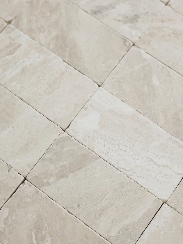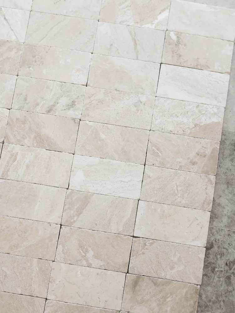 Płytka marmurowa Queen Beige | Coffee White Brick to połączenie naturalnego kamienia i klasycznej estetyki. Ciepła paleta beżowo-kremowych odcieni z subtelnymi użyleniami wprowadza do wnętrz harmonię i przytulny charakter. Bębnowane wykończenie nadaje powierzchni lekko zaokrąglone krawędzie i postarzaną strukturę, podkreślając naturalny wygląd marmuru. Produkt jest idealny dla osób ceniących autentyczne materiały i ponadczasowy styl.