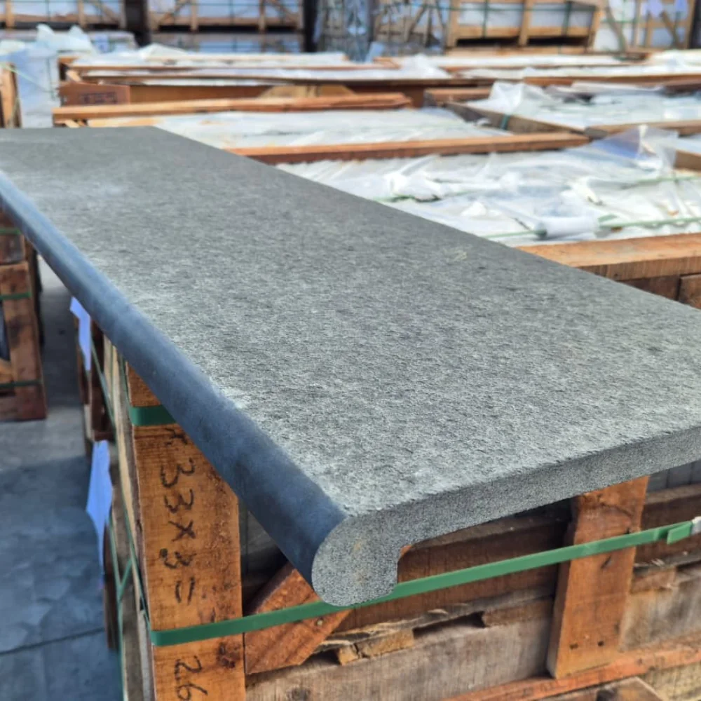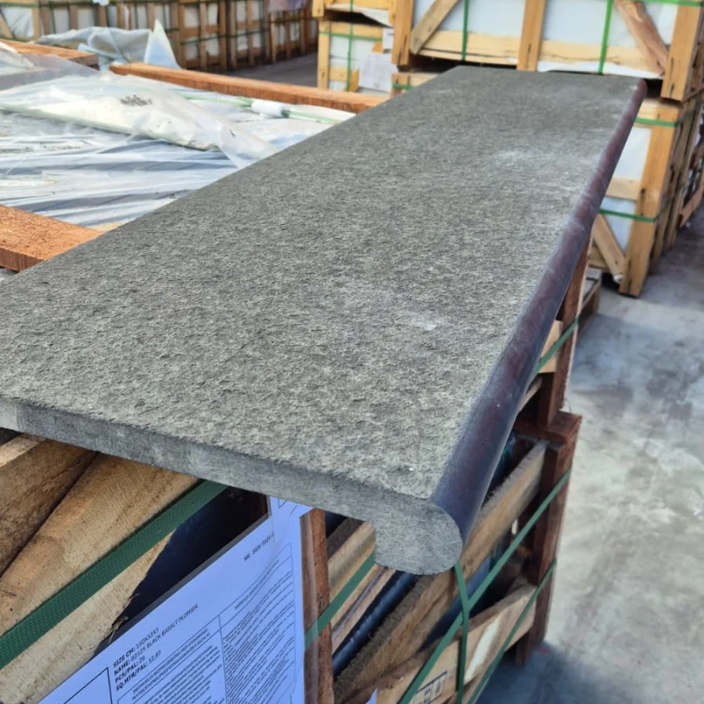 Bazalt jest materiałem naturalnym, dlatego poszczególne stopnice mogą nieznacznie różnić się strukturą i odcieniem. Różnice te podkreślają autentyczność kamienia i nadają każdej realizacji unikalny charakter. Istnieje możliwość zamówienia próbki materiału przed zakupem.
