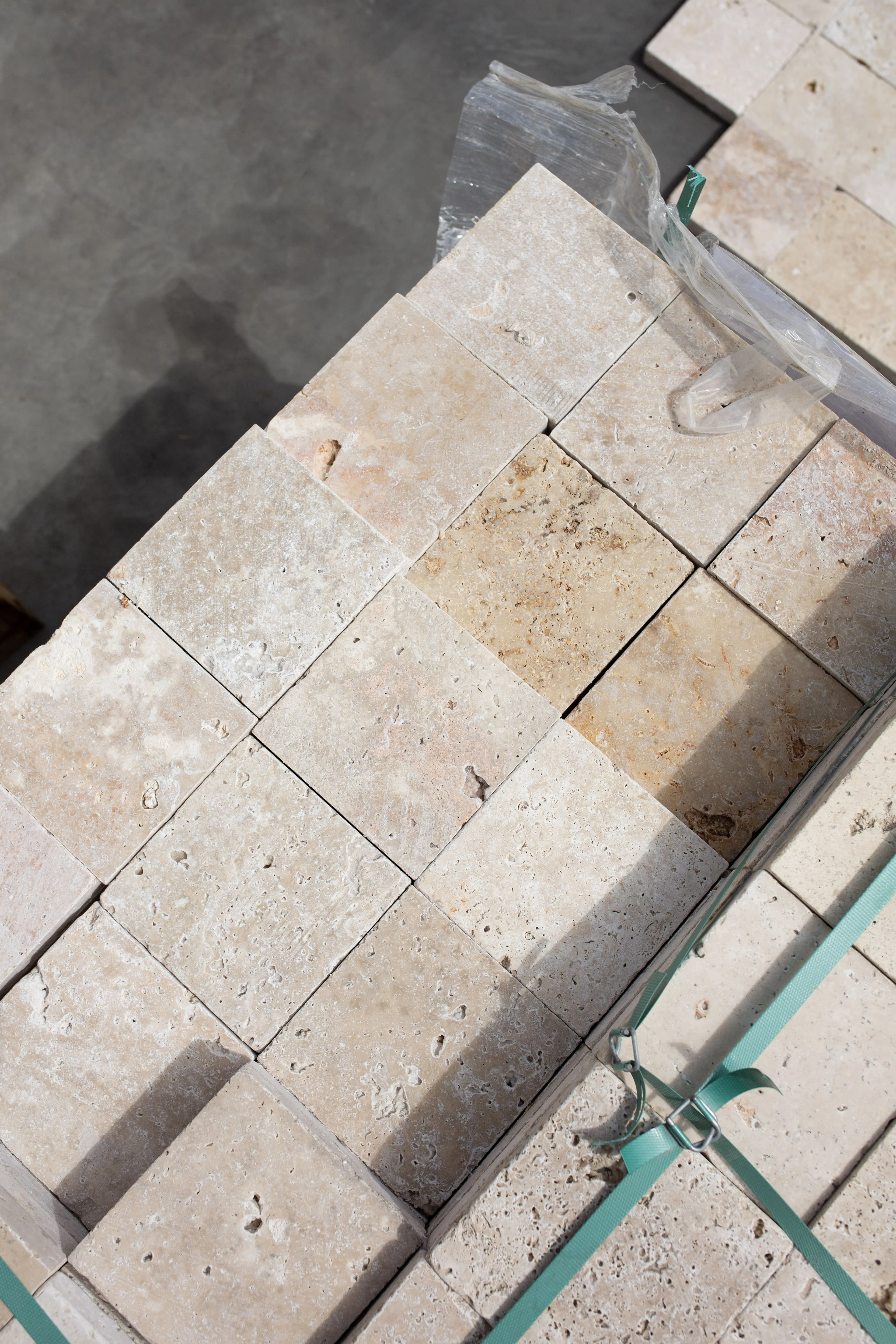Trawertyn Blend Mix w formacie 15,25x15,25 cm to naturalna płytka o wyjątkowym charakterze, która zachwyca ciepłą, subtelną paletą beżów, kremów i brązów. Bębnowane wykończenie nadaje jej lekko postarzany, rustykalny wygląd z miękko zaokrąglonymi krawędziami i nieregularną, porowatą strukturą.