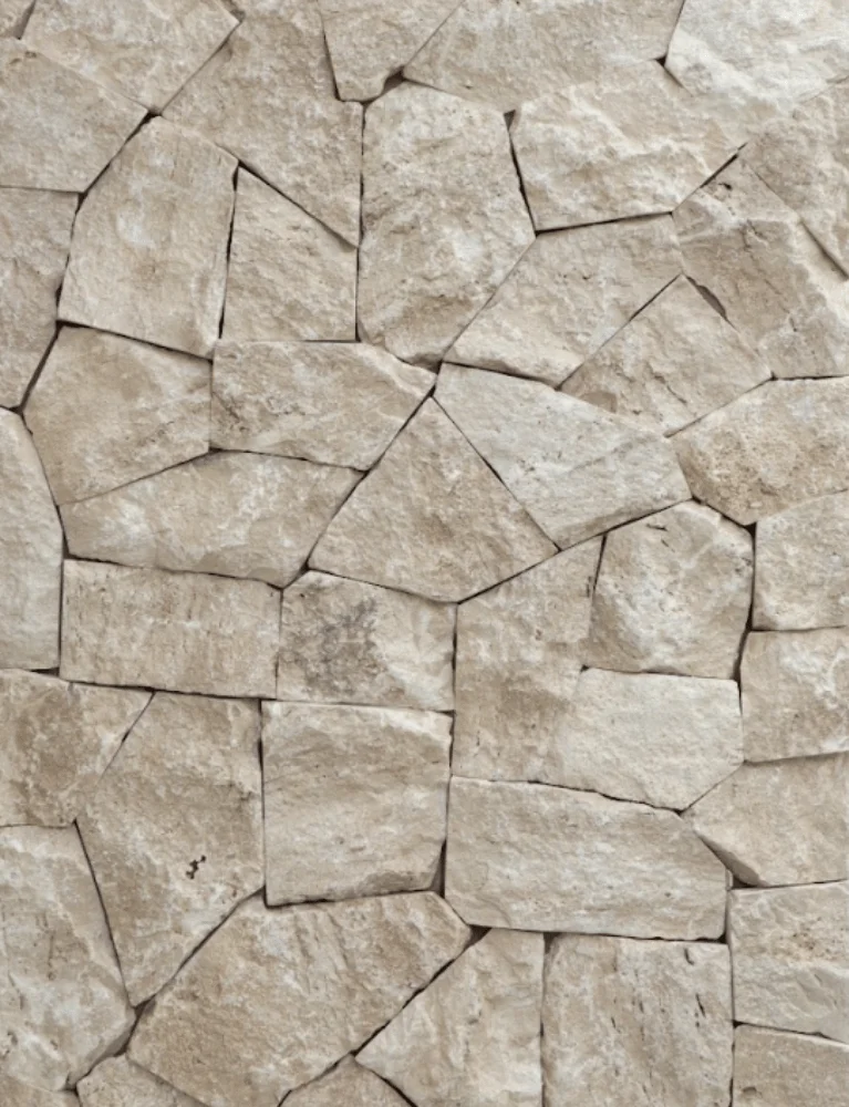 Trawertyn Rockface Ivory Classic to kamień naturalny typu dzikówka (crazy wall), który zachwyca ciepłą kolorystyką w odcieniach jasnego beżu i kości słoniowej. Nieregularne kształty oraz surowa, łamana powierzchnia typu rockface nadają mu autentyczny, rustykalny wygląd inspirowany tradycyjną architekturą śródziemnomorską. To doskonały wybór dla osób poszukujących naturalnego materiału, który wnosi do przestrzeni przytulność, strukturę i ponadczasowy styl.